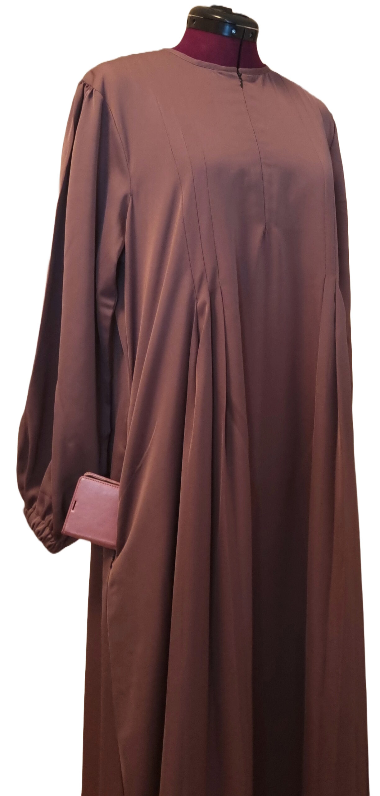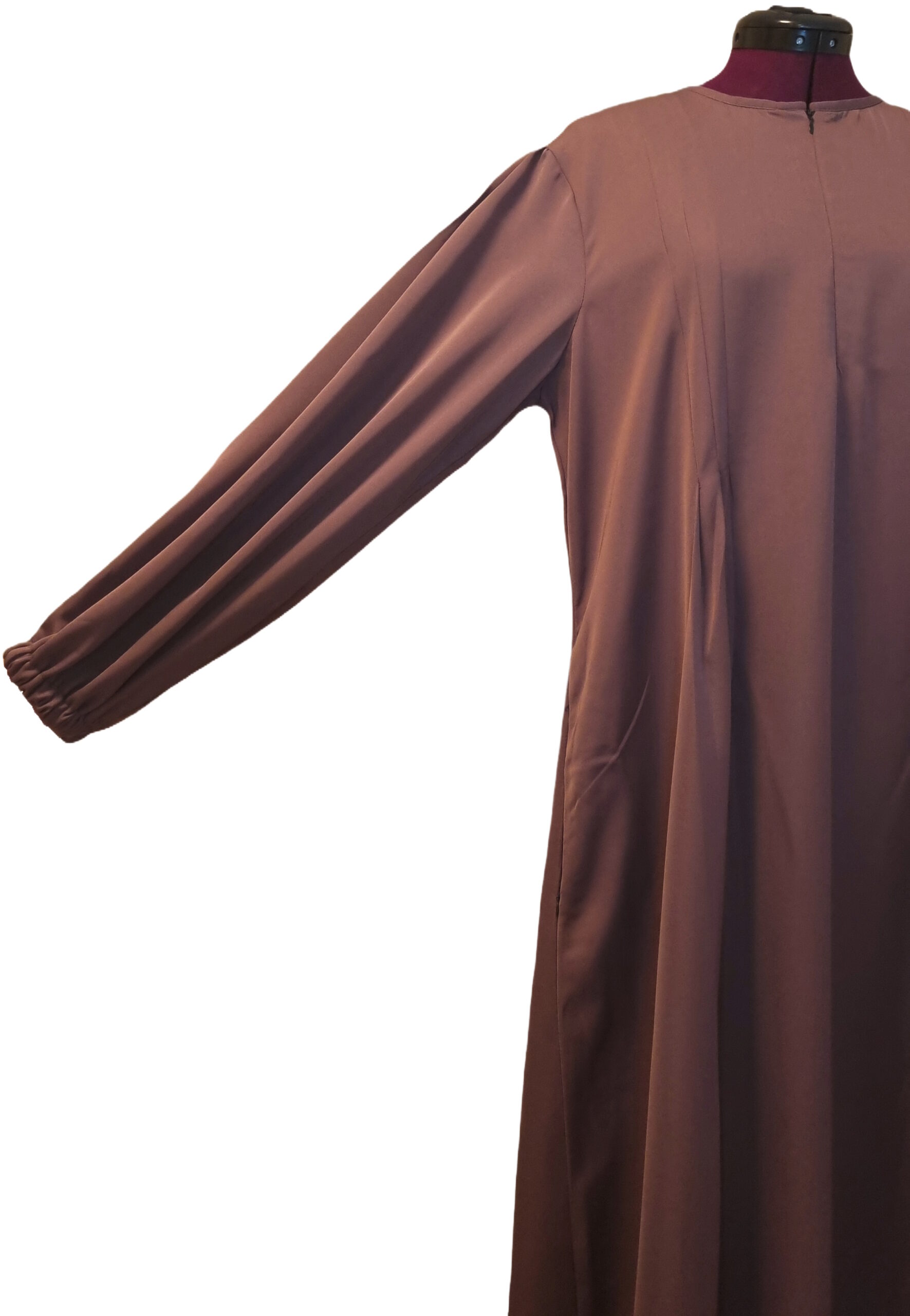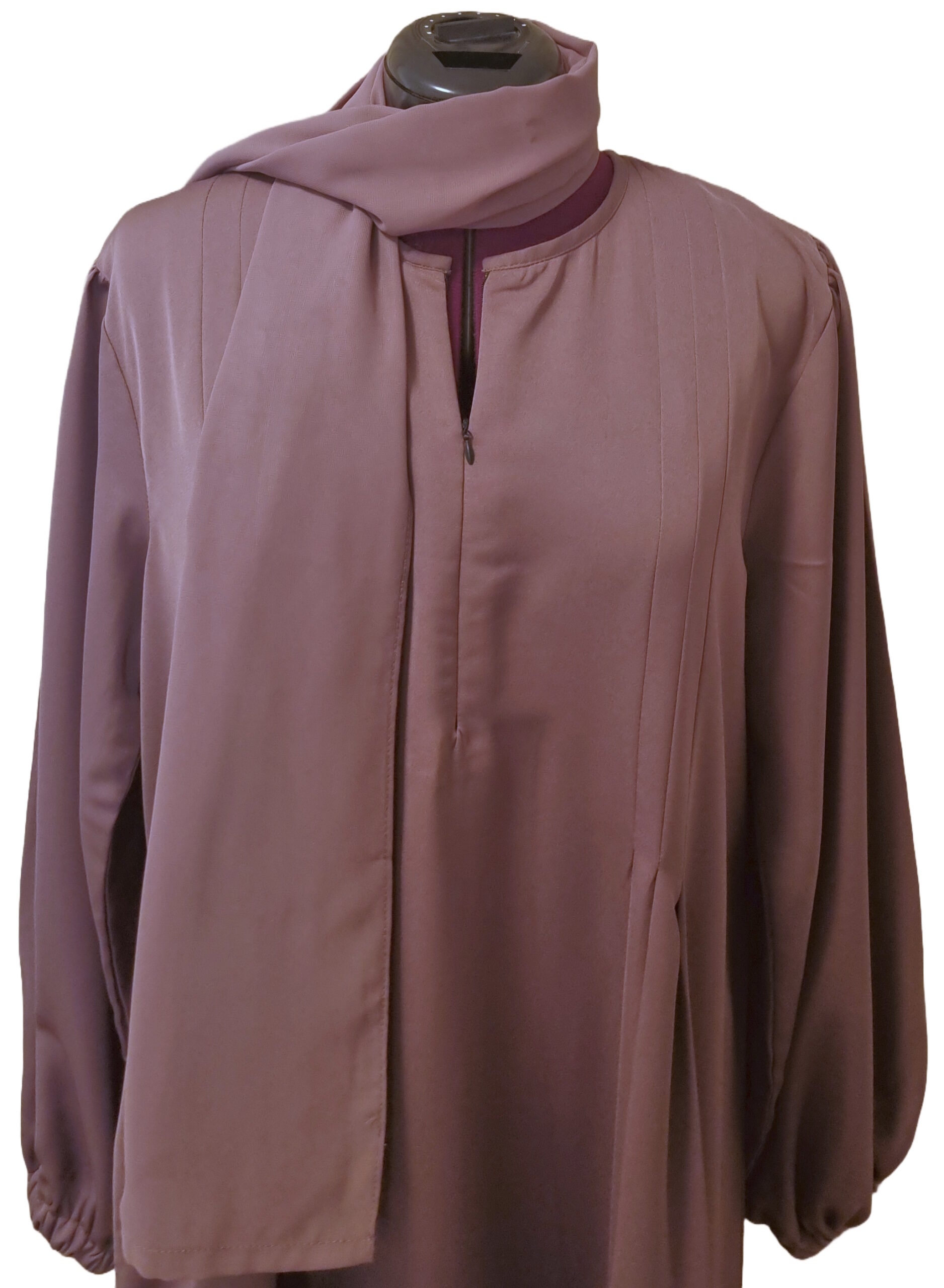 - Den har ballonærmer med elastik ved håndleddet til at sikre at ærmerne ikke går op og kan trækkes op så wudu kan gøres uden problemer.